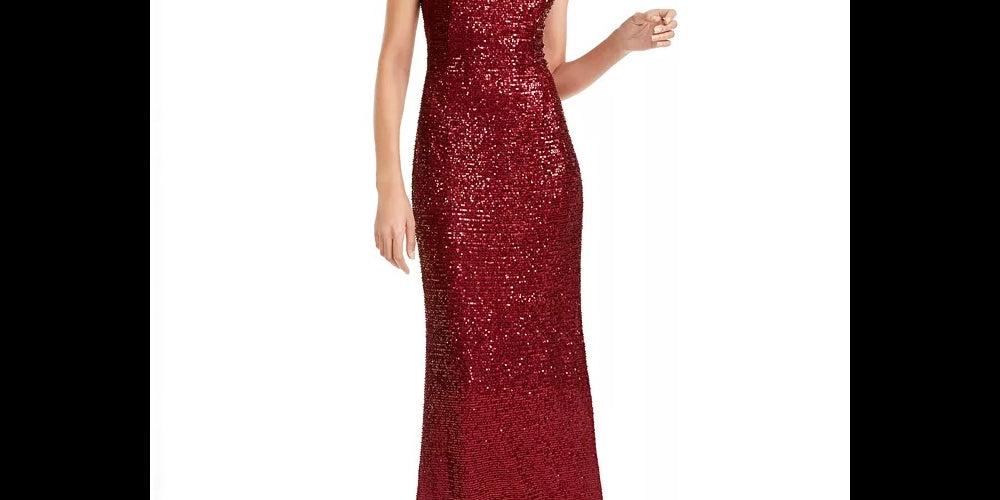 Approx. 56 long from center back neck to hem. Length is based on size 7/8 and varies 1/4 between sizes|Square neckline|Hidden back zipper closure|Allover sequins; lace-up back with satin string|IMPORTANT NOTE; This item arrives with a return tag attached and instructions for removal. Once the tag is removed from the dress; this item cannot be returned.