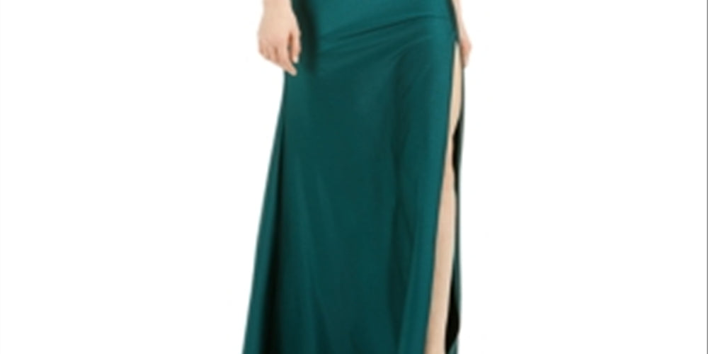 A thigh-high slit moves with every step in this glam gown from Jump| a strapless pick designed with a ruched bodice