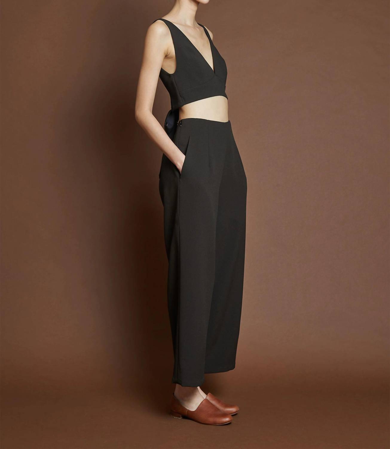 A sports bra that has it all - style, function and support. Introducing the La Lan Bralette Open Back Top by Kaarem, a perfect chocolate brown addition for your spring wardrobe. This flattering bralette is crafted from 100% polyester crepe and features an adjustable sash tie for a customized fit. Originally made in Vietnam, this piece showcases a sophisticated v-neckline and an open back cutout, making it versatile for various layering options. For care, you can machine wash and line dry, ensuring it remains a staple through vacation and casual days alike.