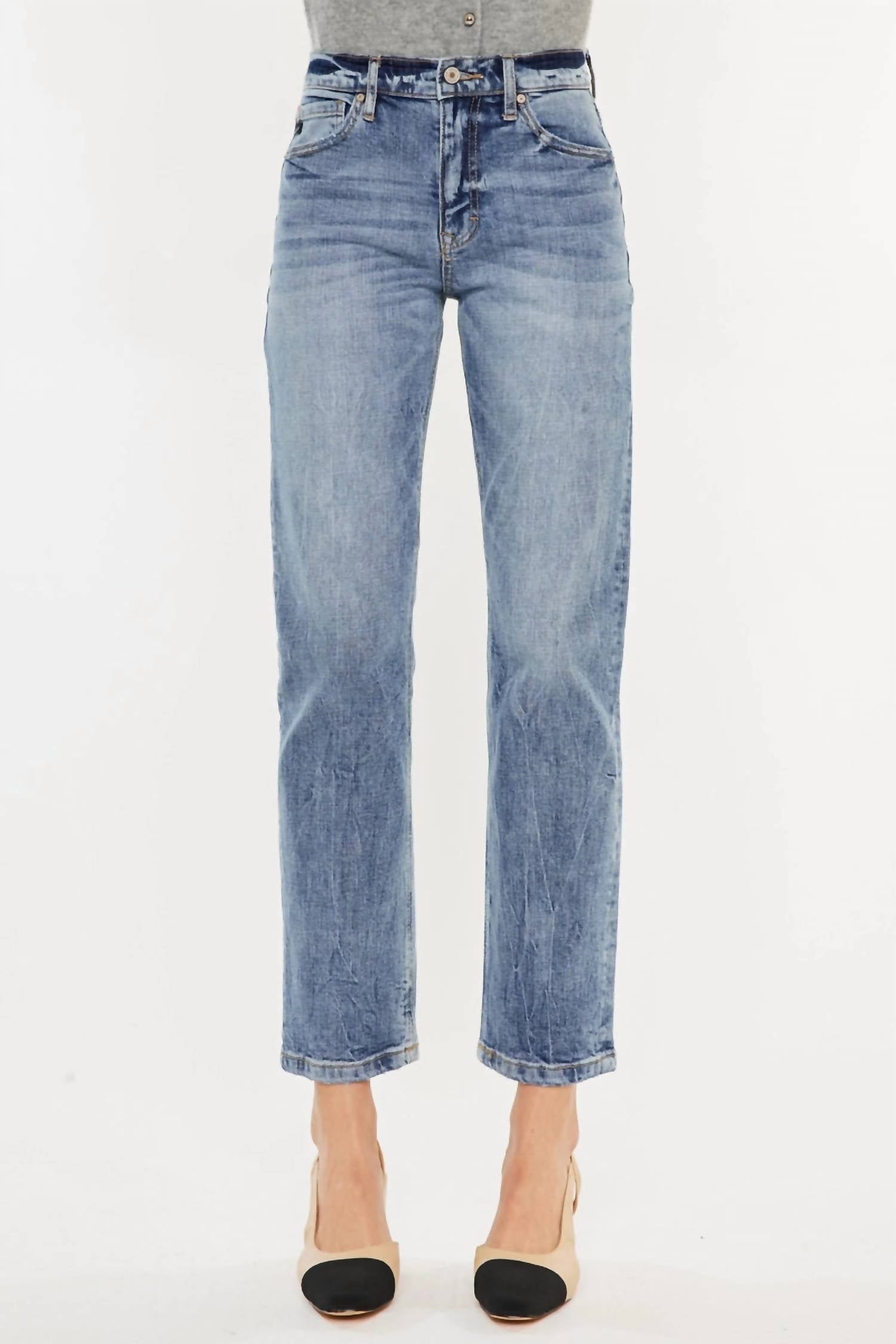 Pair these straight leg jeans with flats, sandals or even heels! You can't go wrong. Meet your new wardrobe staple with the Finished Hem Straight Leg Jean by KanCan, available in a classic Medium Stone Wash. Crafted from a comfortable cotton blend, these jeans offer a high-rise fit and a sleek straight leg silhouette, complete with a chic finished hem. Closure: Button and zip fly closure with traditional 5-pocket style. Composition: 98% Cotton, 2% Spandex. Care: Machine wash cold, tumble dry low. Rise: 10.5" and Inseam: 28" (in size 5/26).