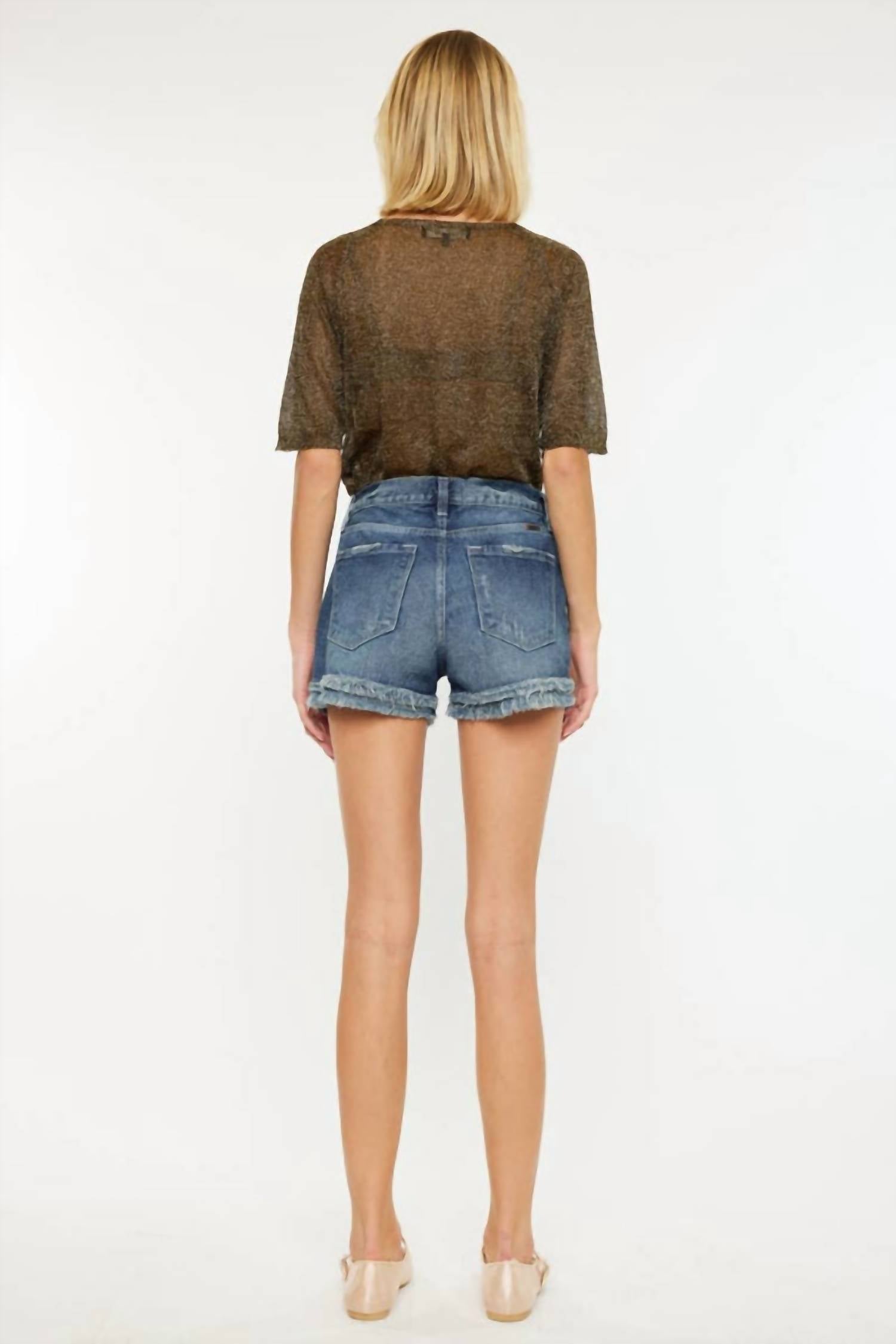You can never have too many jean shorts and these will be your new favorites. Introducing the Frayed Hem Denim Shorts by KanCan, expertly blending edgy style with classic appeal. These medium wash jean shorts are crafted from 100% cotton rigid denim, featuring a high-rise fit with a 10 1/2" rise and 3" inseam in size 5/26, complete with triple-frayed hems for that perfect vintage vibe. Designed with a button closure and pockets, they offer both functionality and style. Perfect for a laid-back spring concert, these shorts are your new go-to for effortless streetwear chic.