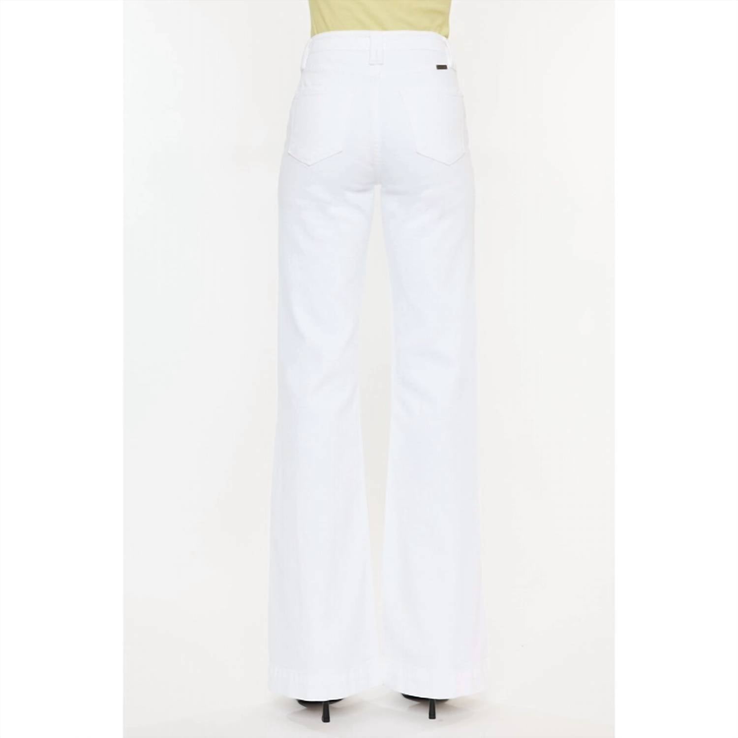 A flattering silhouette that's suprisingly versatile. Introducing the Holly High Rise Wide Flare Jeans by KanCan, a chic addition to your wardrobe in textured white. Crafted from soft cotton, these jeans feature a wide leg style and a high-rise waist for a flattering fit. Closure: Button closure. Care: Machine wash. Ideal for elevating your everyday look.