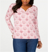 Karen Scott Women's 3-4 Sleeve Printed Henley Pink Size -M