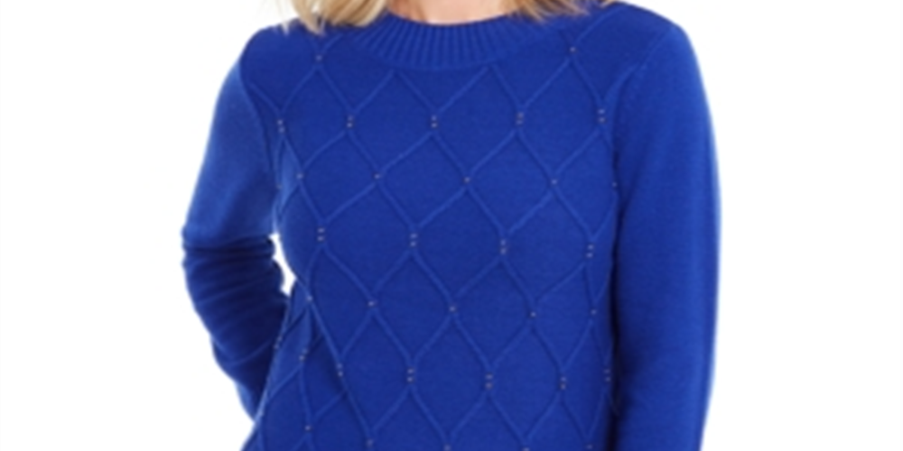 Karen Scott Women's Beaded Cable Mock Neck Sweater Blue Size XX-Large