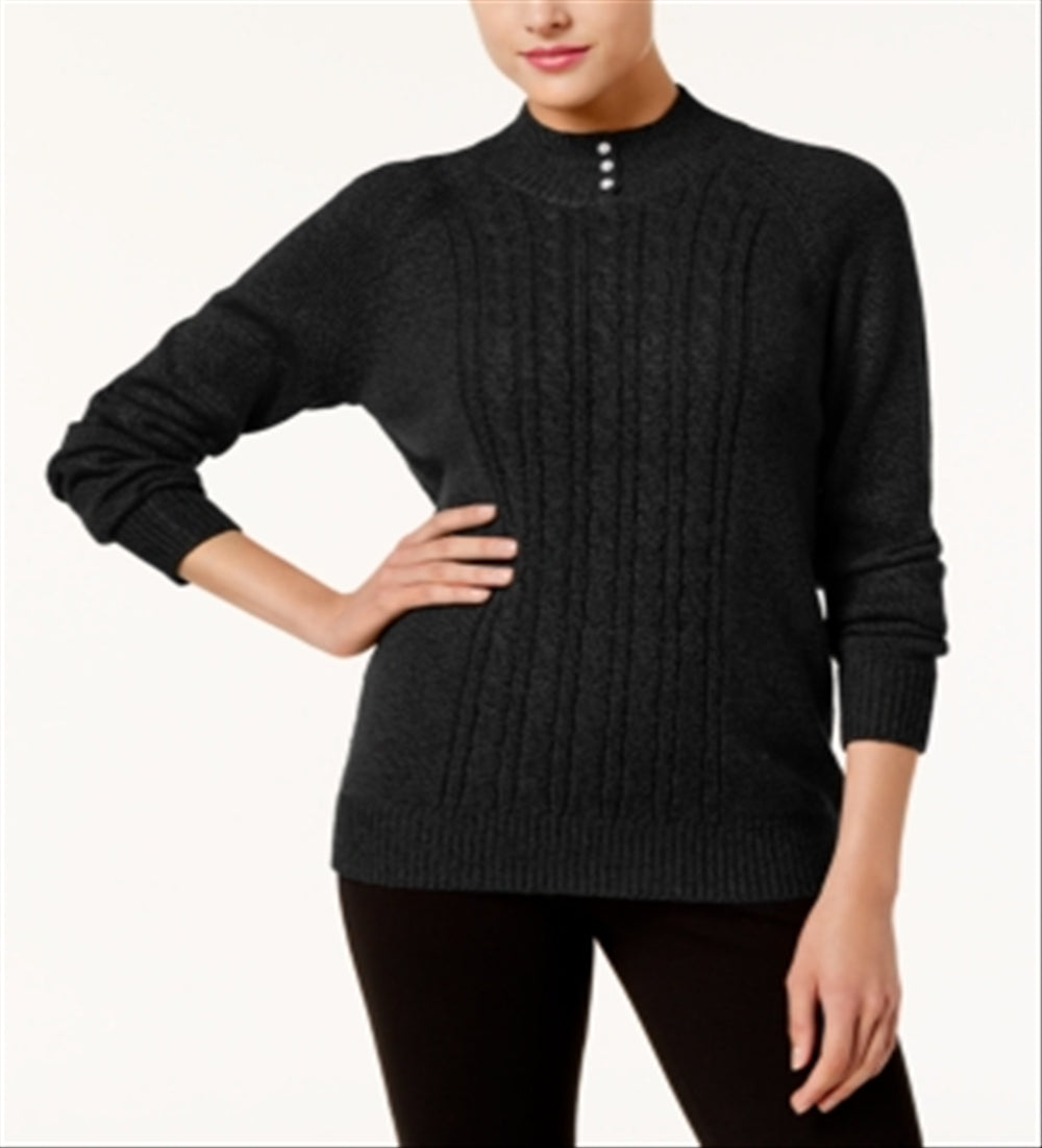 Karen Scott Women's Button Trim Mock Neck Sweater Black Size XX-Large