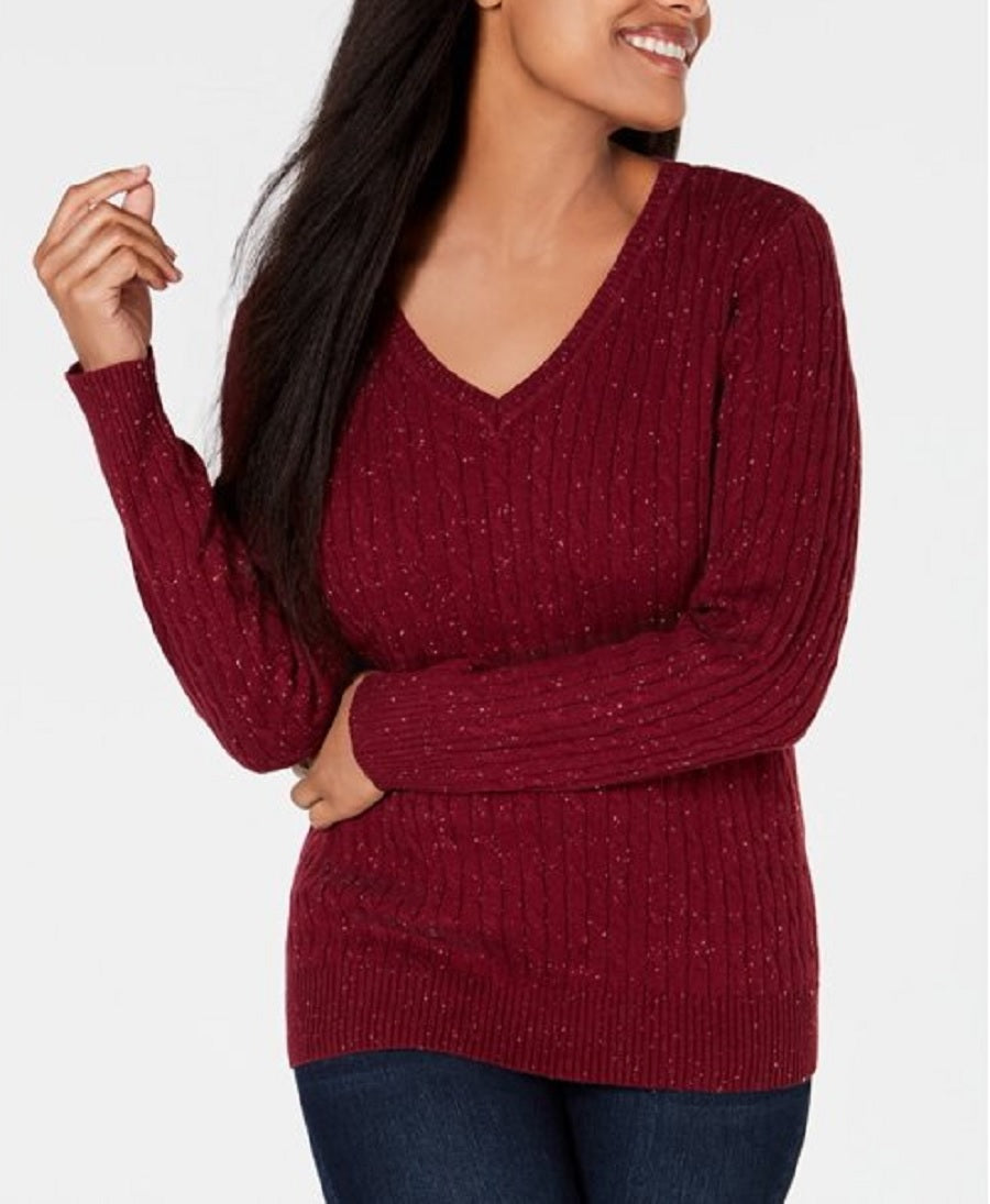Karen Scott Women's Cable-Knit V-Neck Sweater Medium Red Size Medium