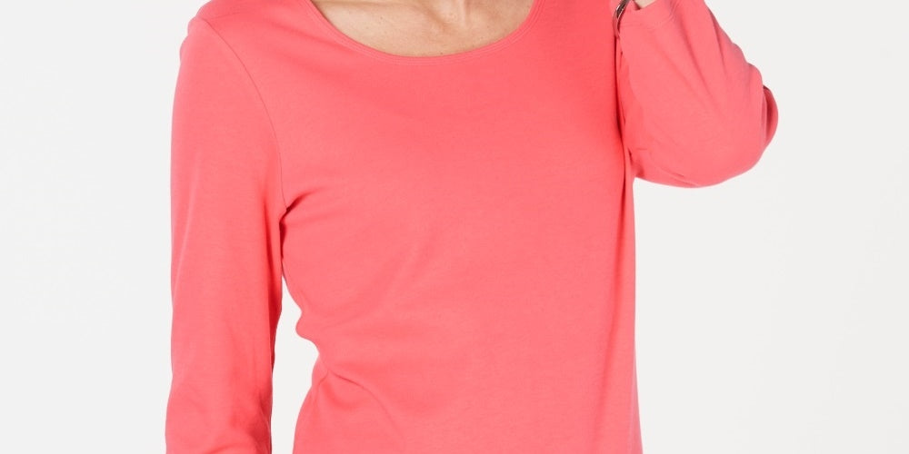 Karen Scott Women's Cotton 3/4-Sleeve Top Orange Size Medium
