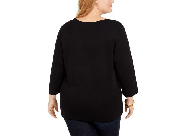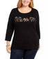 Karen Scott Women's Cotton Elephant Print Top Black Size 1X