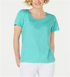 Star-studded embellishments add sparkle to your casual look with Karen Scott's scoop-neck top| styled in a cozy soft cotton for all day comfort.| Hits at hip| Due to generous sizing| we suggest sizing down for the perfect fit| Scoop neckline| Star-studded embellishments at front