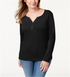 Karen Scott Women's Cotton Henley Neck Top Black Size Petite S