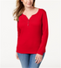 Karen Scott Women's Cotton Henley Neck Top Red Size Petite X-Large