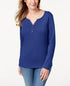 Karen Scott Women's Cotton Henley Top Blue Size Small