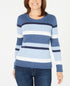 Karen Scott Women's Cotton Striped Cable Knit Sweater Blue Size Petite Small