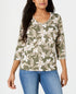 Karen Scott Women's Floral Print V Neck Top Green Size Small