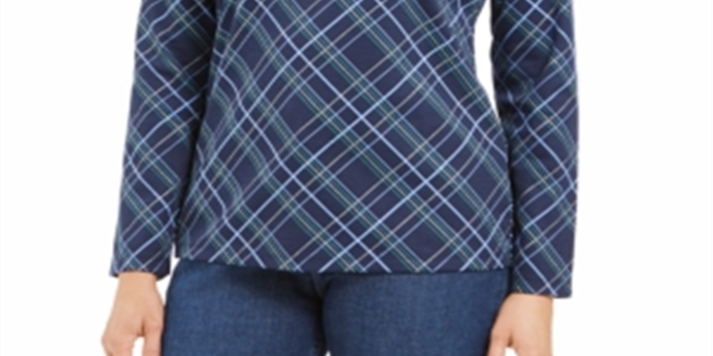 Karen Scott Women's Holly Plaid Embellished Top Blue Size XX-Large