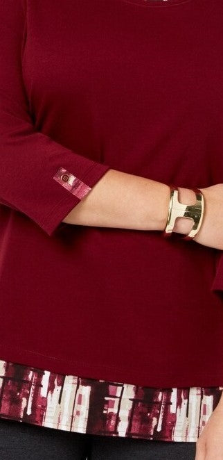 Karen Scott Women's Layered-Look Solid & Plaid Top Red Size Medium