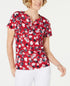 Karen Scott Women's Liberty Daisy Printed Henley Top Red Size PL