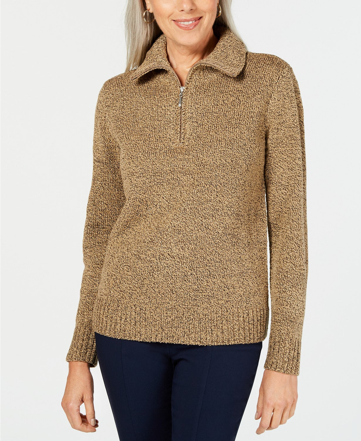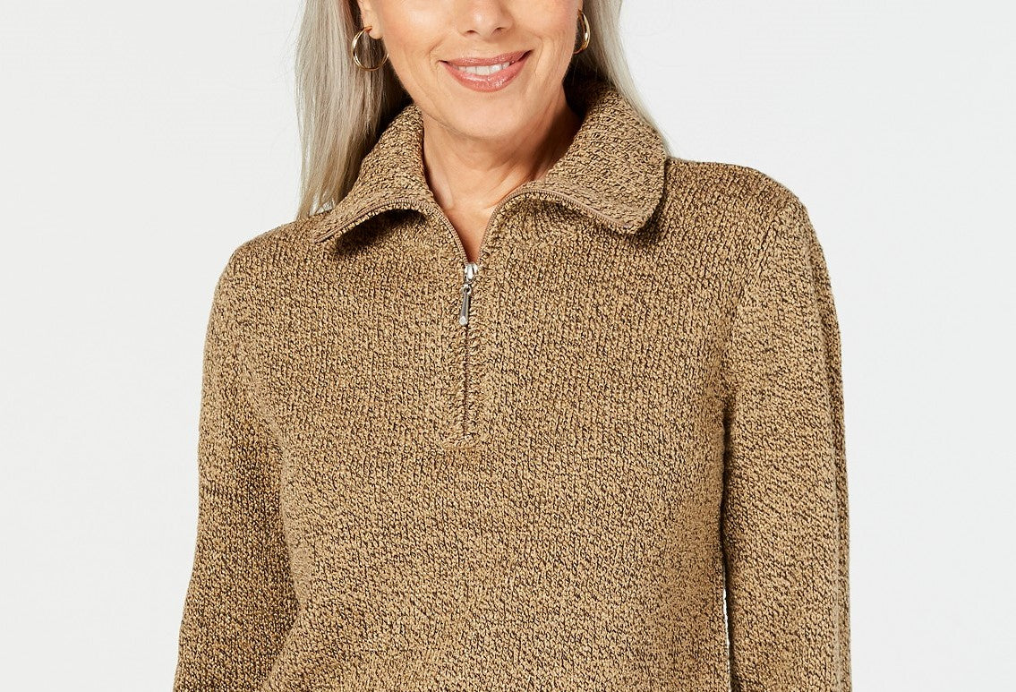 Karen Scott Women's Marled-Knit Quarter-Zip Sweater Brown Size XX Large