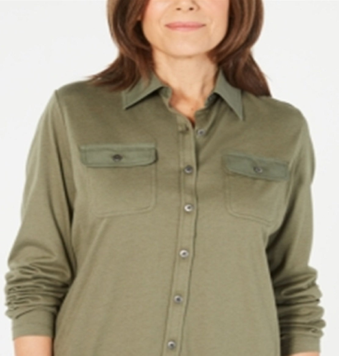 Karen Scott Women's Mixed Media Button Front Top Green Size Small