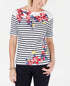 Provide your look with a splash of vibrant color courtesy of stylish placed floral print over a classic striped finish on this petite Karen Scott top.| Hits at hip| Designed to fit and flatter 5'4" and under frame| Boat neckline| Placed floral print at front| Elbow-length sleeves