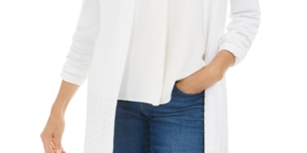 KAREN SCOTT|Style; Sweater|Occasion; Casual|Size; S|Material; Rayon|Color; White|Open Cardigan