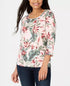 Karen Scott Women's Palm Print 3/4 Sleeve Top Pink Size Small