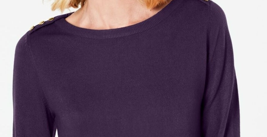 Karen Scott Women's Petite Button-Shoulder Sweater Purple Size Medium