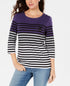 Karen Scott Women's Petite Striped Colorblocked Top Purple Size PL