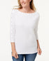 Karen Scott Women's Petite Studded Boat-Neck Cotton Top White Size PS/M