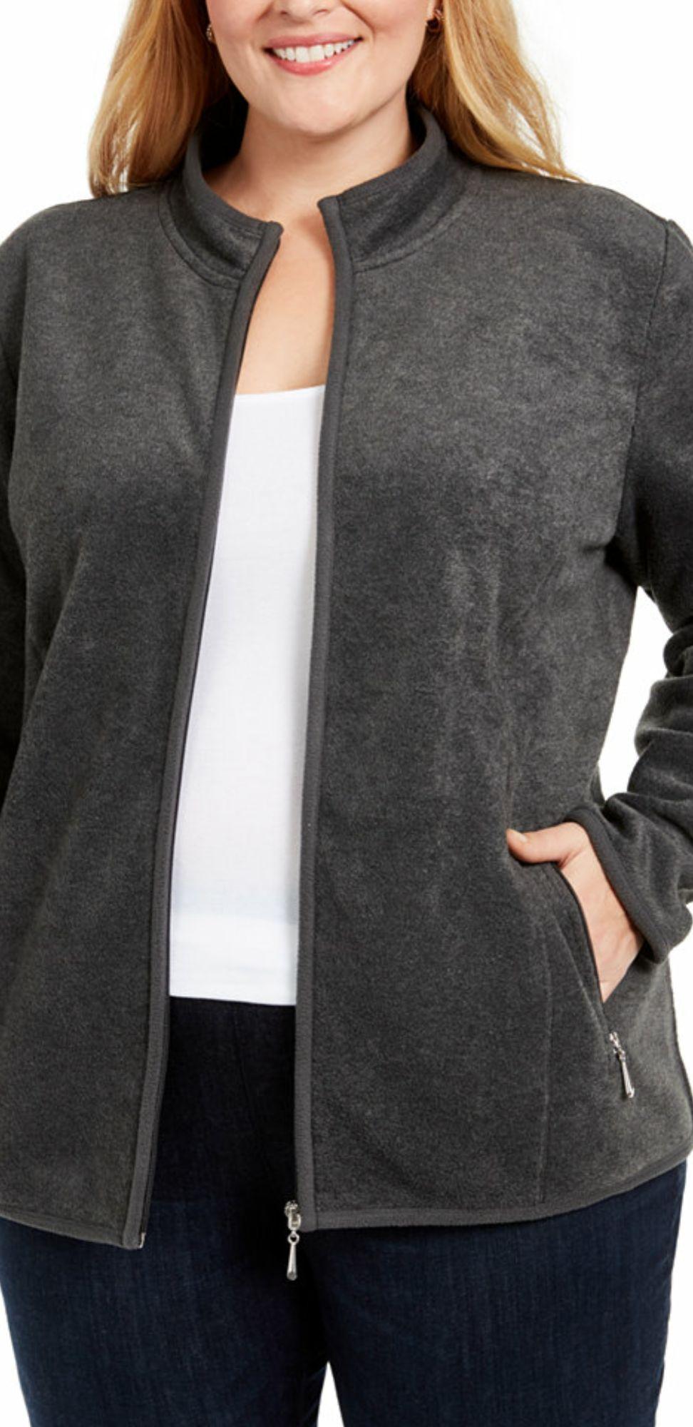 Karen Scott Women's Plus Zeroproof Fleece Performance Athletic Jacket Black Size 0X