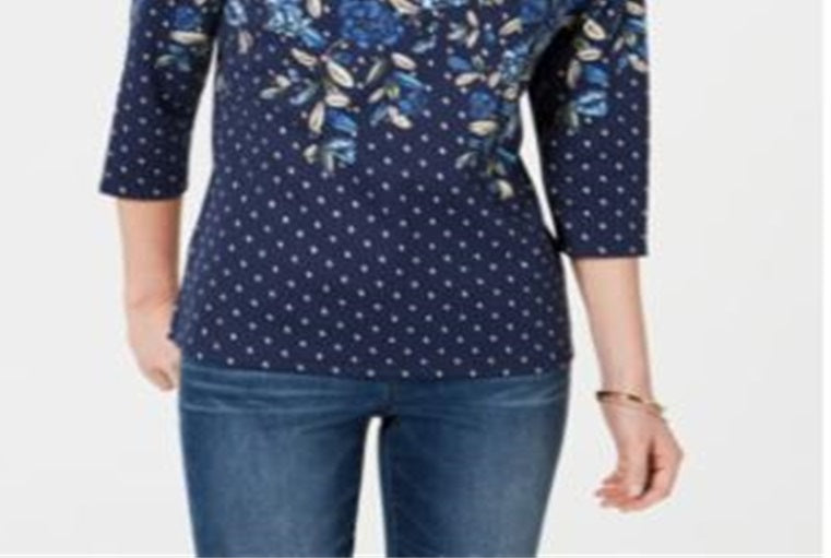 Karen Scott Women's Printed 3/4 Sleeve Top Blue Size Petite