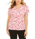 Karen Scott Women's Printed Short Sleeve Henley Top Orange Size Medium