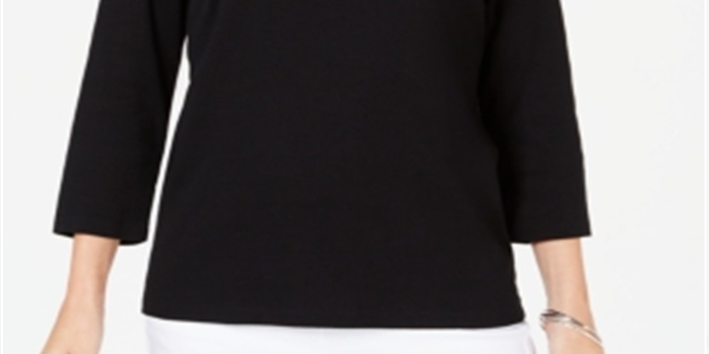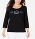Karen Scott Women's Rhinestone Embellished Cotton Top Black Size Petite S/M