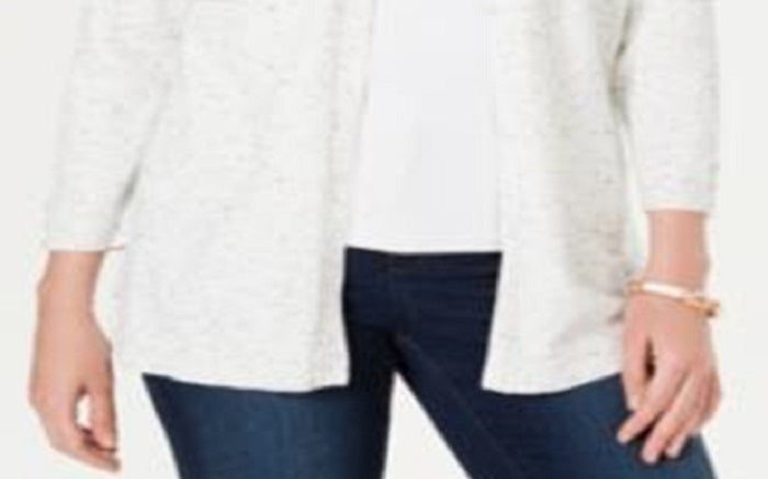 Karen Scott Women's Ribbed Yoke Cardigan Sweater White Size Medium