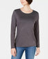 Karen Scott Women's Satin-Trim Scoop-Neck Top Black Size XX-Large