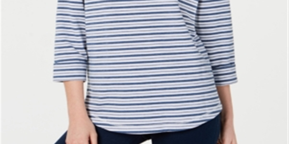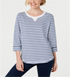 Karen Scott Women's Striped 3/4 Sleeve Sweatshirt Blue - White Size Petite S