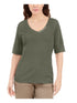 Karen Scott Women's V Neck T-Shirt Top Green Size Small