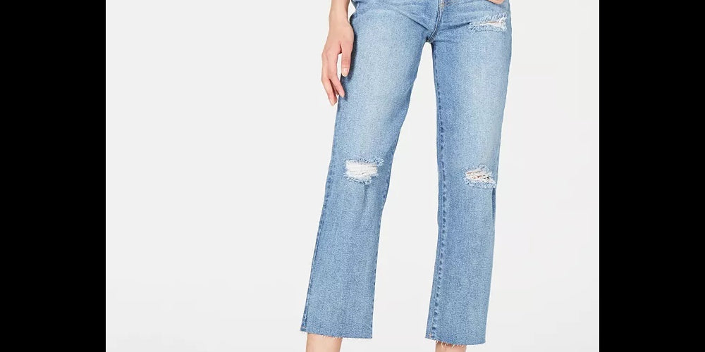 Approx. inseam; 25-1/2|High rise; front; approx. 11-1/2; leg opening; 12-1/2|Zipper and button closure at front; belt loops|Frayed hem; ripped at leg|Cotton/Tencel® lyocell/spandex
