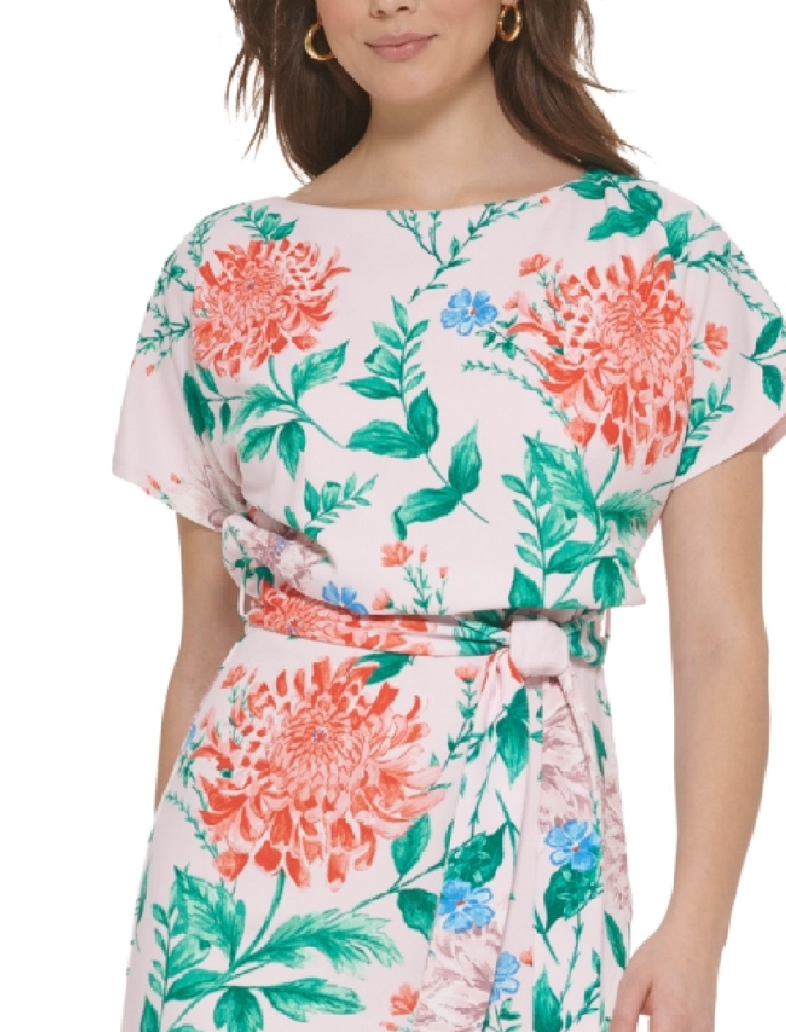 Kensie Women's Floral Print Tie Waist Sheath Dress Pink Size 16