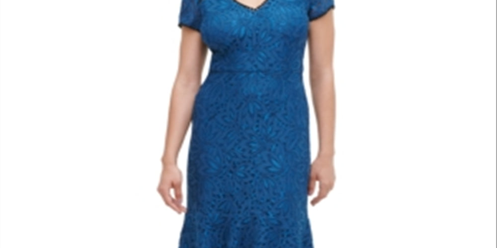 Kensie Women's Lace Flounce MIDI Dress Blue Size 16