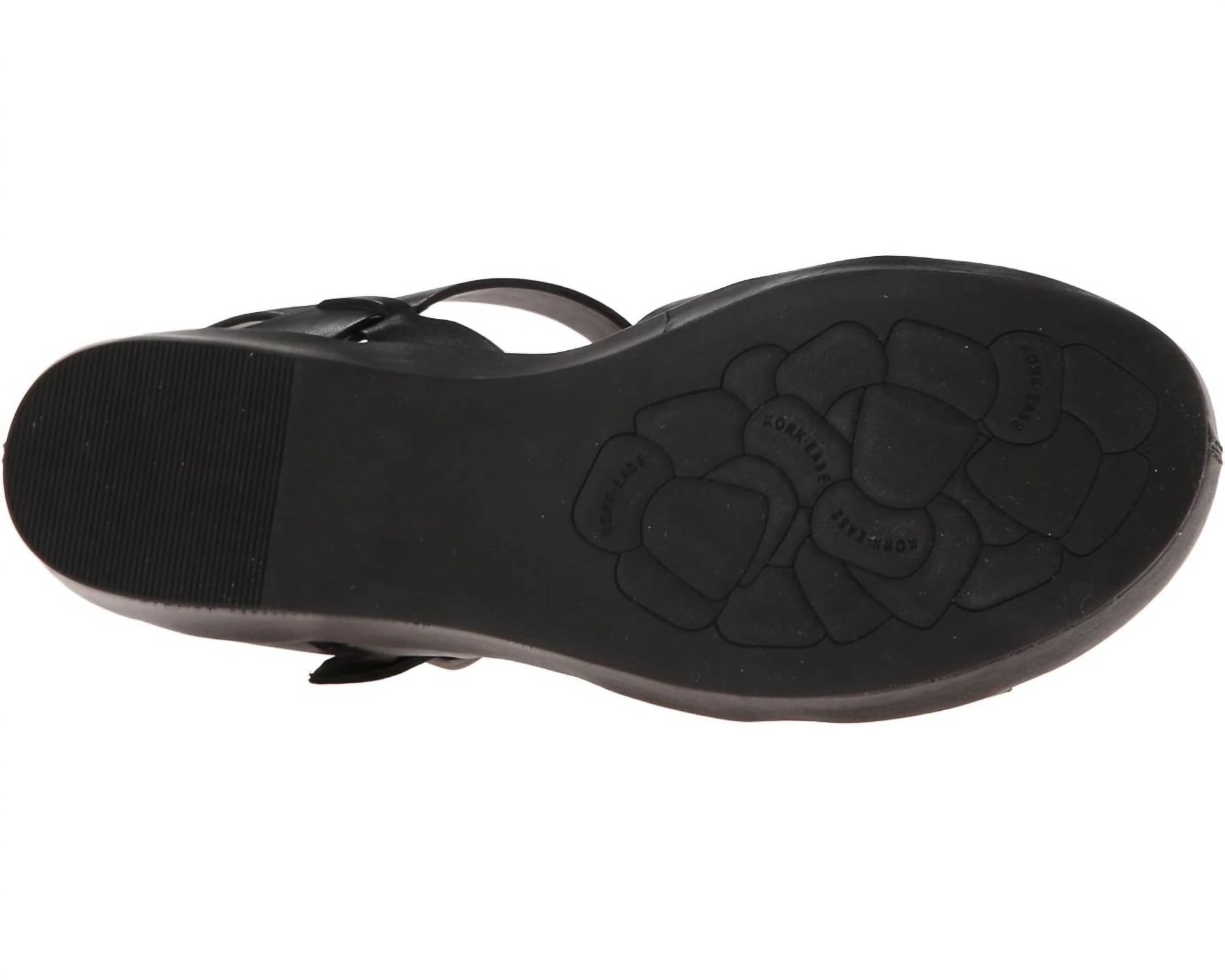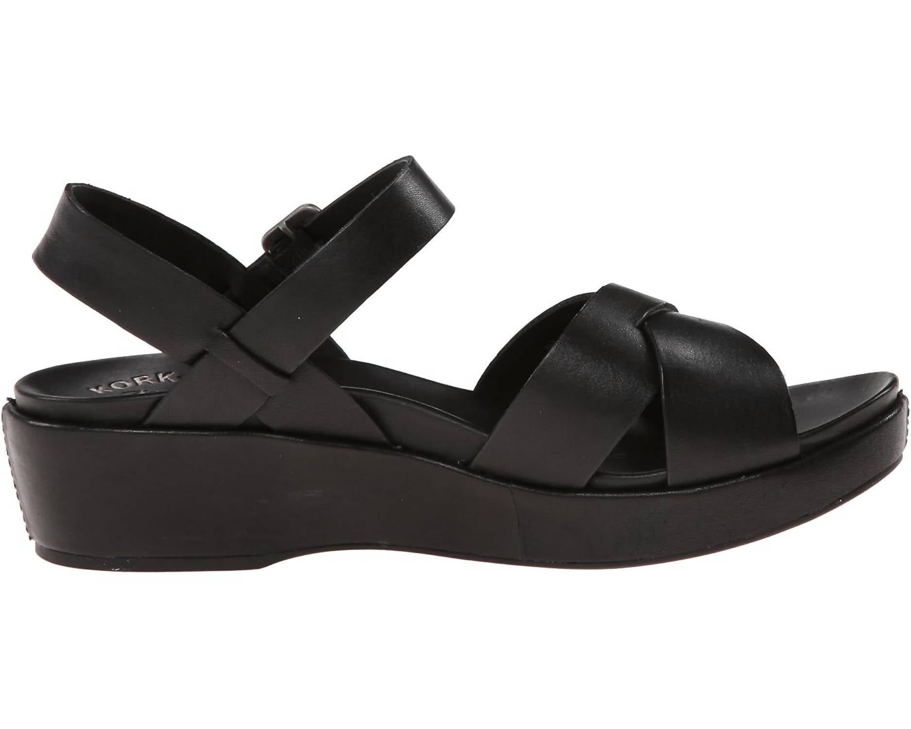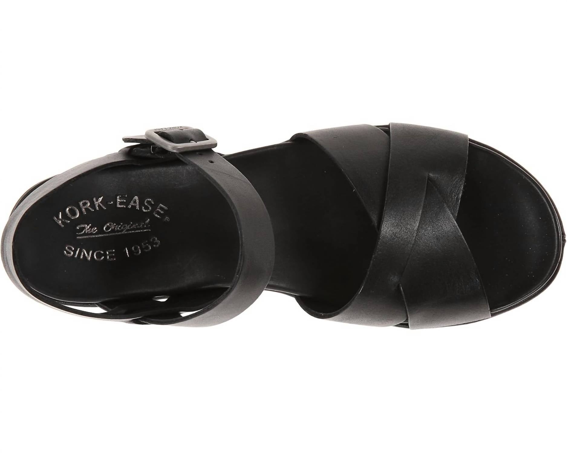 Classicly cute and all-day-wearable. We love this sandal. Experience the perfect blend of style and comfort with the Myrna 2.0 Wedge Sandal by KORK-EASE in classic black leather. This women's sandal features an open toe and a low wedge heel, standing at 1.75 inches, making it an ideal choice for all-day wear. The interior boasts a breathable soft fabric suede lining and a footbed covered in natural cork or soft leather, enhanced with patented 2.0 Comfort Technology. Topped with a high-traction lightweight rubber outsole and wrapped in leather or natural cork, this sandal is perfect for those who value both fashion and function.