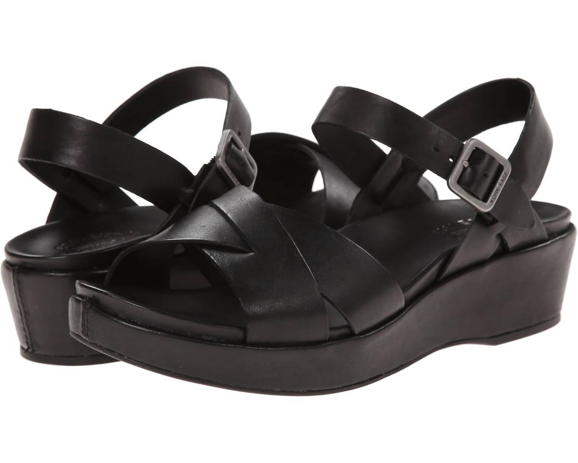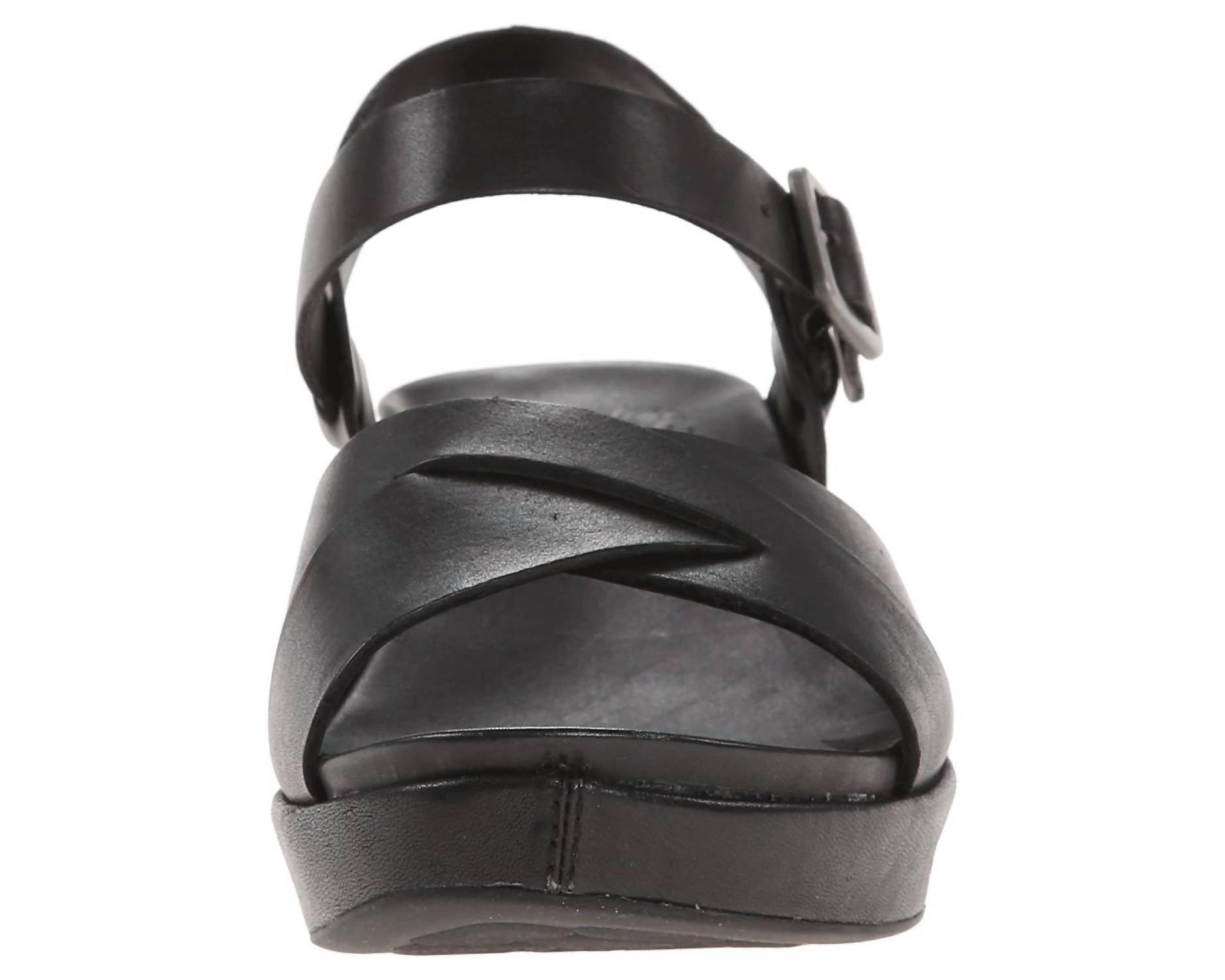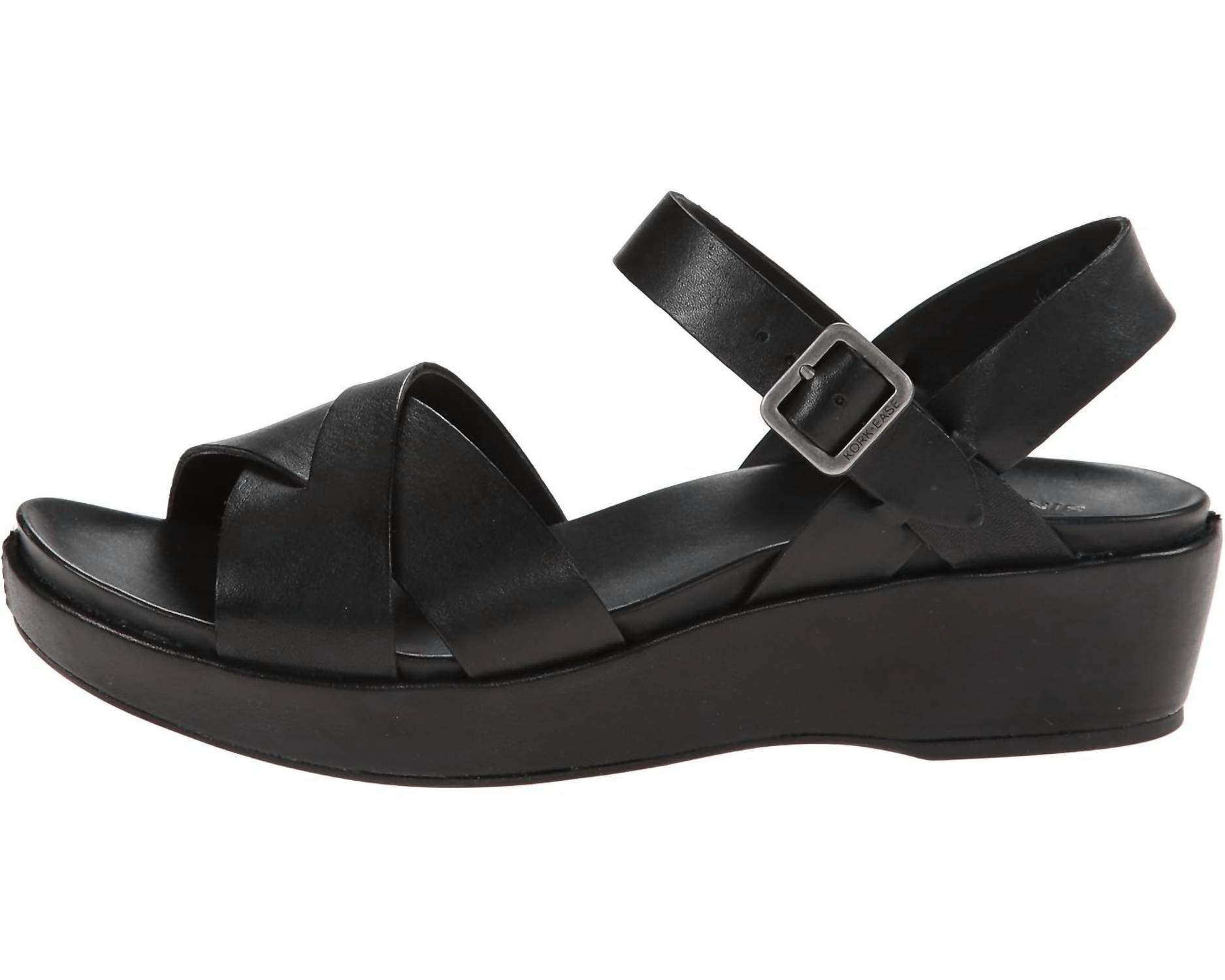 Classicly cute and all-day-wearable. We love this sandal. Experience the perfect blend of style and comfort with the Myrna 2.0 Wedge Sandal by KORK-EASE in classic black leather. This women's sandal features an open toe and a low wedge heel, standing at 1.75 inches, making it an ideal choice for all-day wear. The interior boasts a breathable soft fabric suede lining and a footbed covered in natural cork or soft leather, enhanced with patented 2.0 Comfort Technology. Topped with a high-traction lightweight rubber outsole and wrapped in leather or natural cork, this sandal is perfect for those who value both fashion and function.