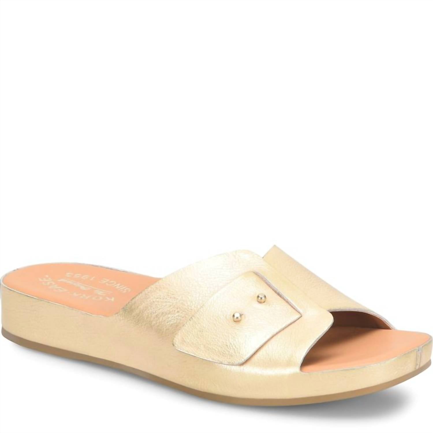 Flowy dresses, cropped pants, and even jumpsuits... this sandal works with them all! The Mesa slide features a soft full grain or metallic leather upper, a breathable micro fiber lining, a cushioned micro fiber footbed with extra foam, a 1-inch leather-wrapped wedge heel, and a lightweight rubber outsole with high traction. It has overlasted construction for durability.