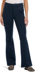These full-length trousers boast a high-rise fit and flared leg, providing a flattering silhouette. Made from a stretch-woven fabric, the composition includes 52% polyester, 40% cotton, and 8% spandex, ensuring comfort and a beautiful drape. Closure is achieved through a zip-fly and button, with convenient belt loops and both front and back pockets adding functionality. Care instructions detail machine wash cold and line dry for lasting wear.