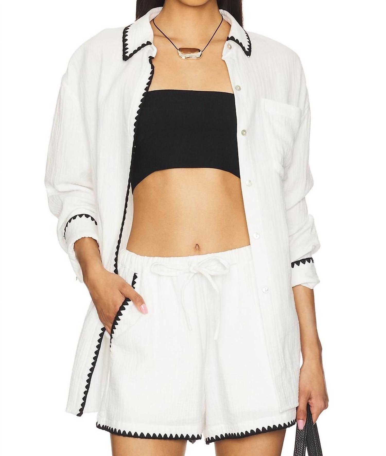 Perfectly tailored and soft to the touch. Elevate your beach day ensemble with the Idania Button Down Shirt by L*SPACE, featuring long sleeves and a classic button closure for versatile styling. This limited-edition piece is crafted from 100% organic cotton, making it a sustainable choice for minimalist wardrobes. The creamy fabric is accented with striking black blanket stitching, offering a sophisticated touch. Care for this piece easily with a machine wash.