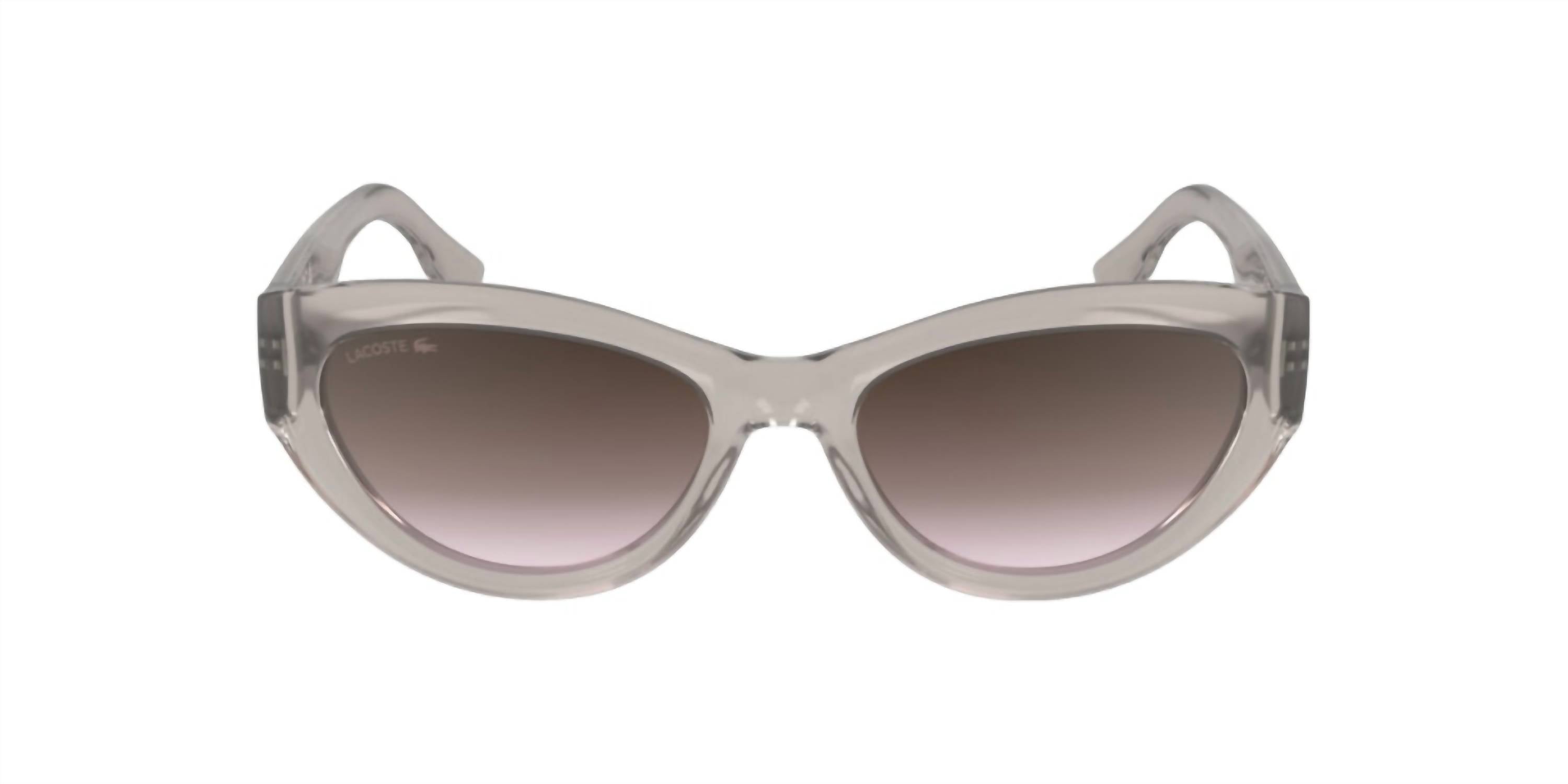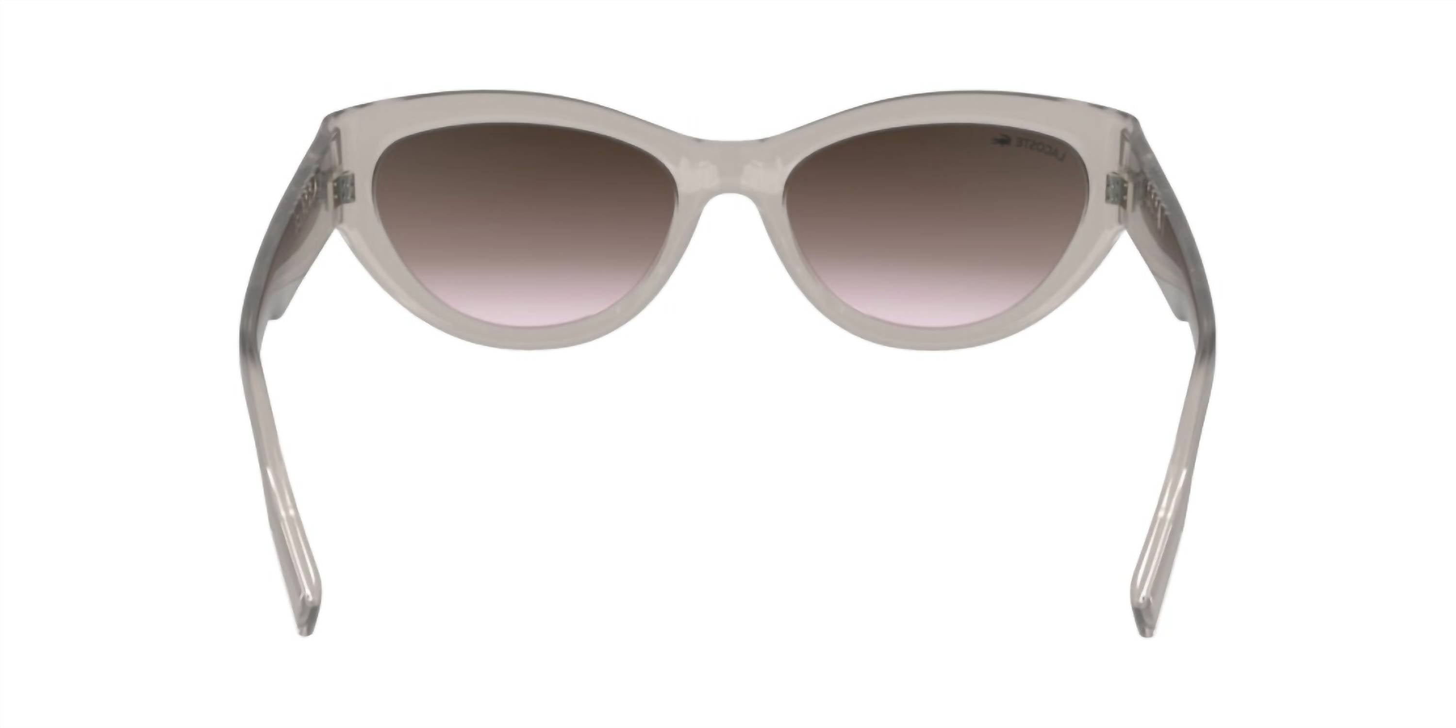 Upgrade your eyewear collection with these stunning sunglasses, meticulously designed to offer a perfect balance of style and functionality. Protect your eyes in style! The LACOSTE Women's L6013s Sunglasses offer a chic cat-eye shape with lenses measuring 54 mm in width, a 18 mm bridge, and 140 mm temple length. Featuring a sophisticated Opaline nude frame with brown rose gradient lenses, these sunglasses combine elegance and modern aesthetics. Constructed using bio-injected material for both the temples and front, they ensure durability while being eco-friendly. Enhance your style with this quintessential accessory for sunny days.