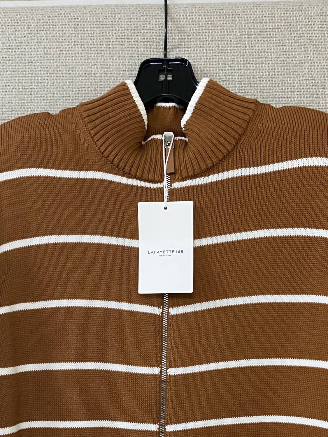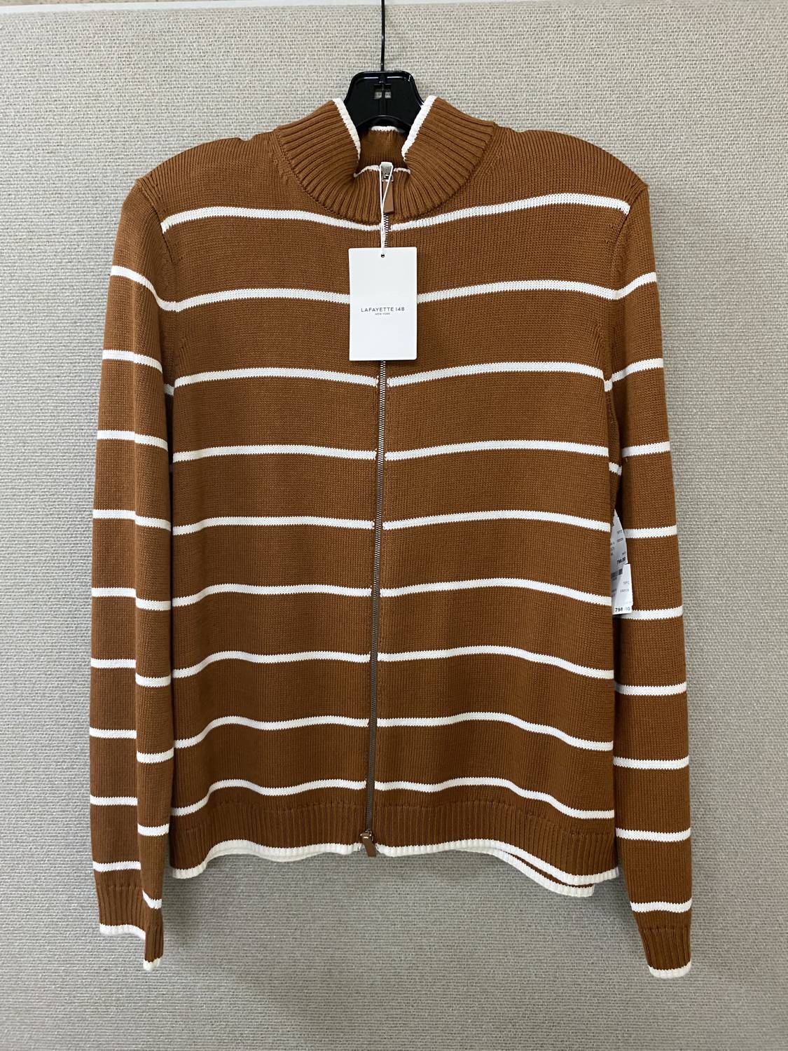 Experience the effortlessly chic Stripe Fitted Bomber Jacket by Lafayette 148, crafted in a beautiful Copper Multi hue. Designed with long sleeves and a hip-length cut, this jacket boasts a refined stand collar and stylish zip closure. Made from a luxurious blend of 70% Cotton and 30% Silk and expertly crafted in Italy, this piece delivers both quality and comfort. Length: 24" (size L). Dry clean only.