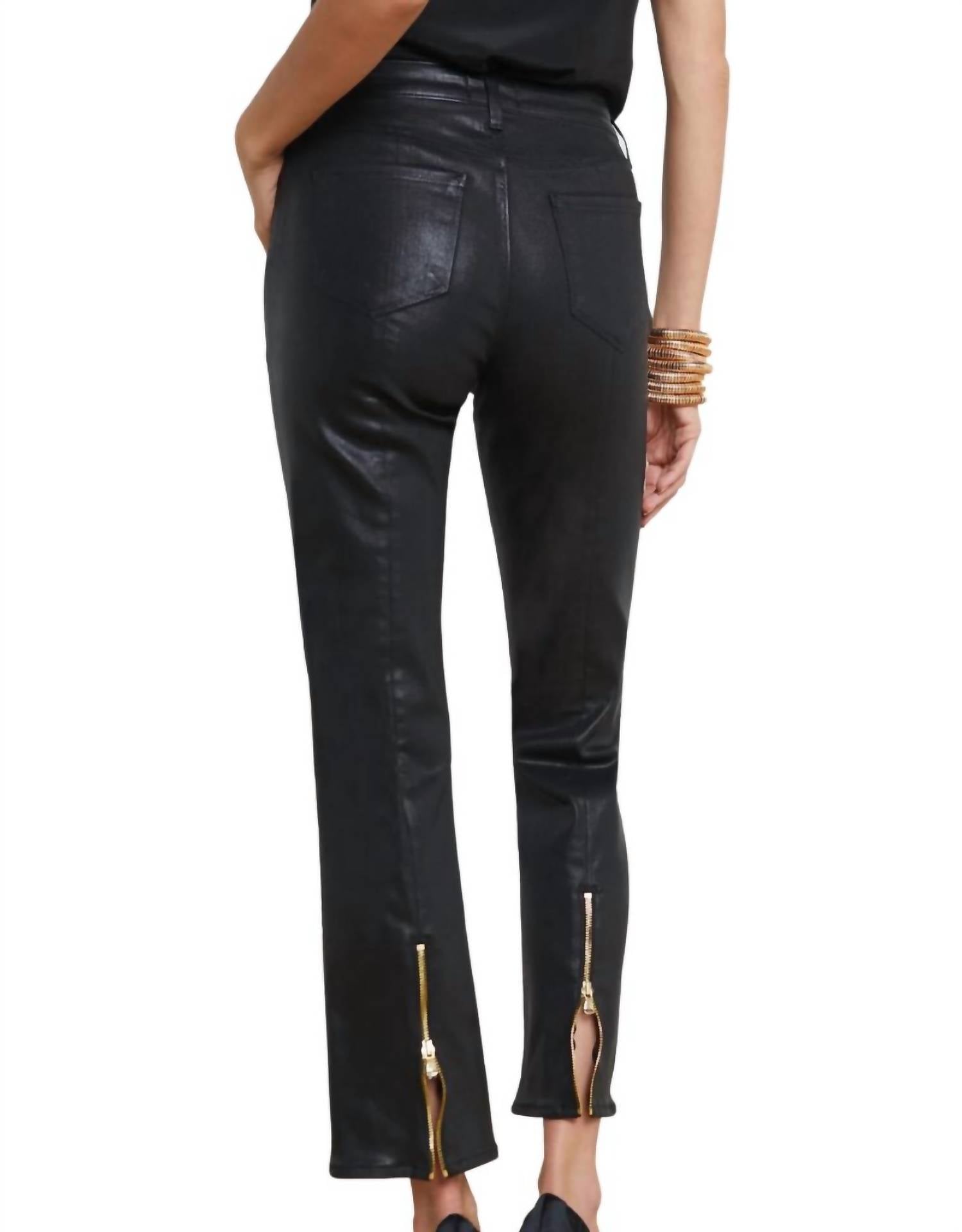 Step into luxury with the Ginny High Rise Straight Jeans by L'Agence, crafted from a premium cotton blend (86% Cotton 11% Elastane 3% Spandex) for a contour-hugging fit. These noir coated jeans feature a high rise and straight leg with an inseam of 30 inches, enhanced by dramatic exposed zip detail and back seaming. Spot clean.