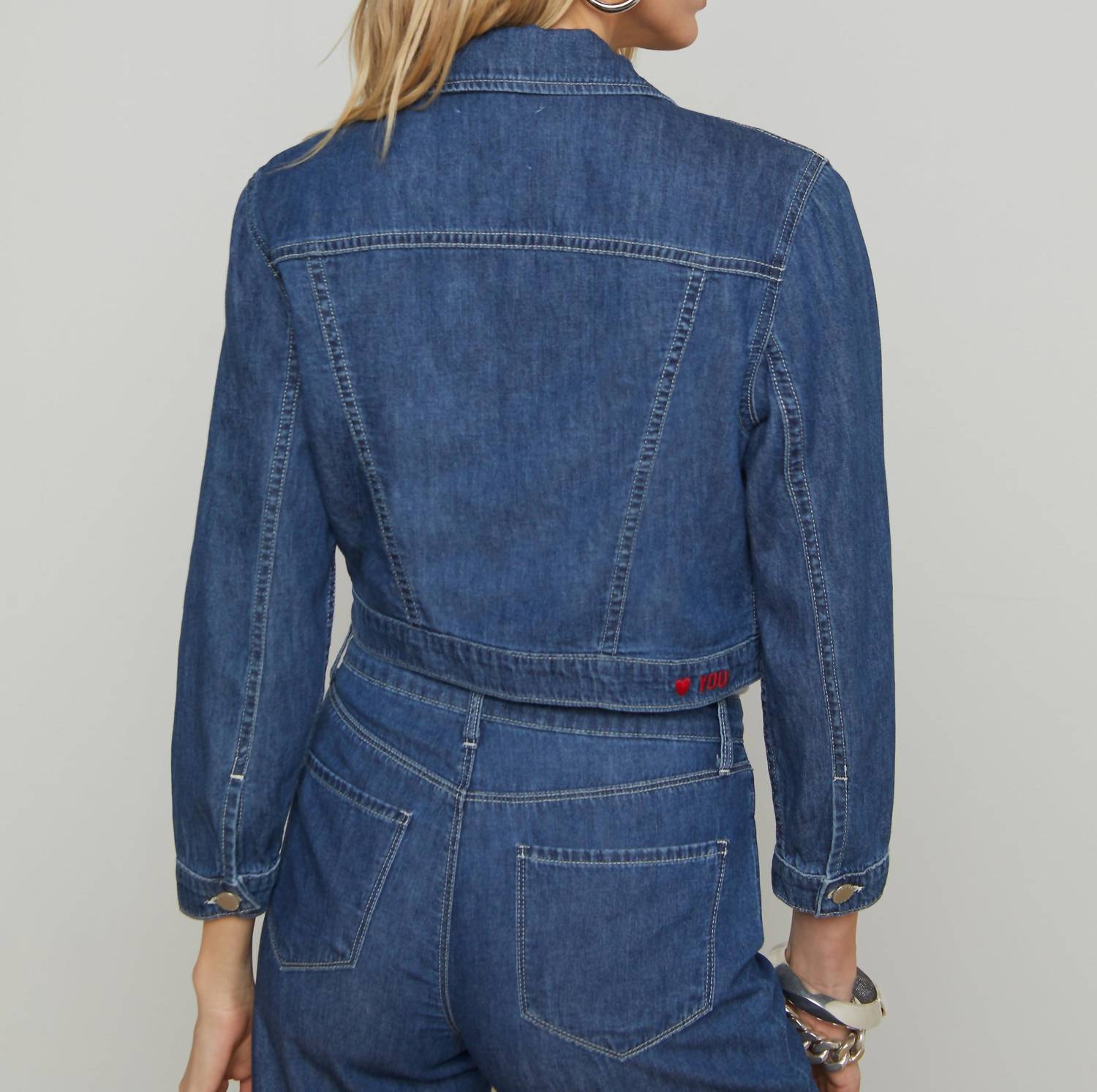 The perfect jean jacket for those slightly crisper days between seasons. Introducing the L'Agence Koda Cropped Denim Jacket in Spokane, a perfect blend of classic style and modern edge. This women's jean jacket features long sleeves and a collar, crafted from solid cotton for durability and comfort. With a practical button closure and convenient pockets, it becomes a timeless staple for any wardrobe. Care instructions include machine wash and tumble dry, ensuring easy maintenance.