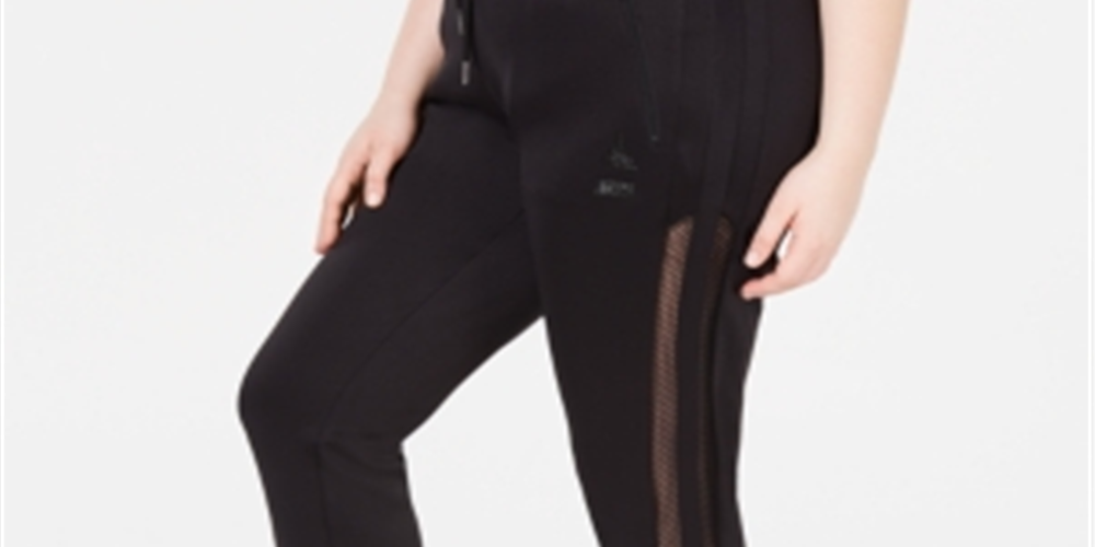 Lala Anthony Women's Trendy Plus Size Mesh Stripe Jogger Pants Black Size 2X
